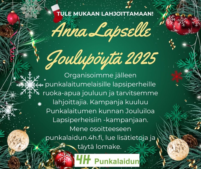 Pikaopas: perusta oma 4H-yritys ja tienaa jouluna (23.10.2025) Joulusesonki on täydellinen hetki kokeilla yrittäjyyttä ja tienata omaa rahaa. Kun ihmiset etsivät lahjoja, koristeita ja apua arjen kiireisiin, nuoren 4H-yrittäjän tuotteet ja palvelut voivat erottua edukseen. Tämä pikaopas auttaa sinua käynnistämään oman yritystoimintasi nopeasti ja hyödyntämään joulun mahdollisuudet. |